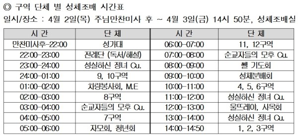 구역 단체 별 성체조배 시간표